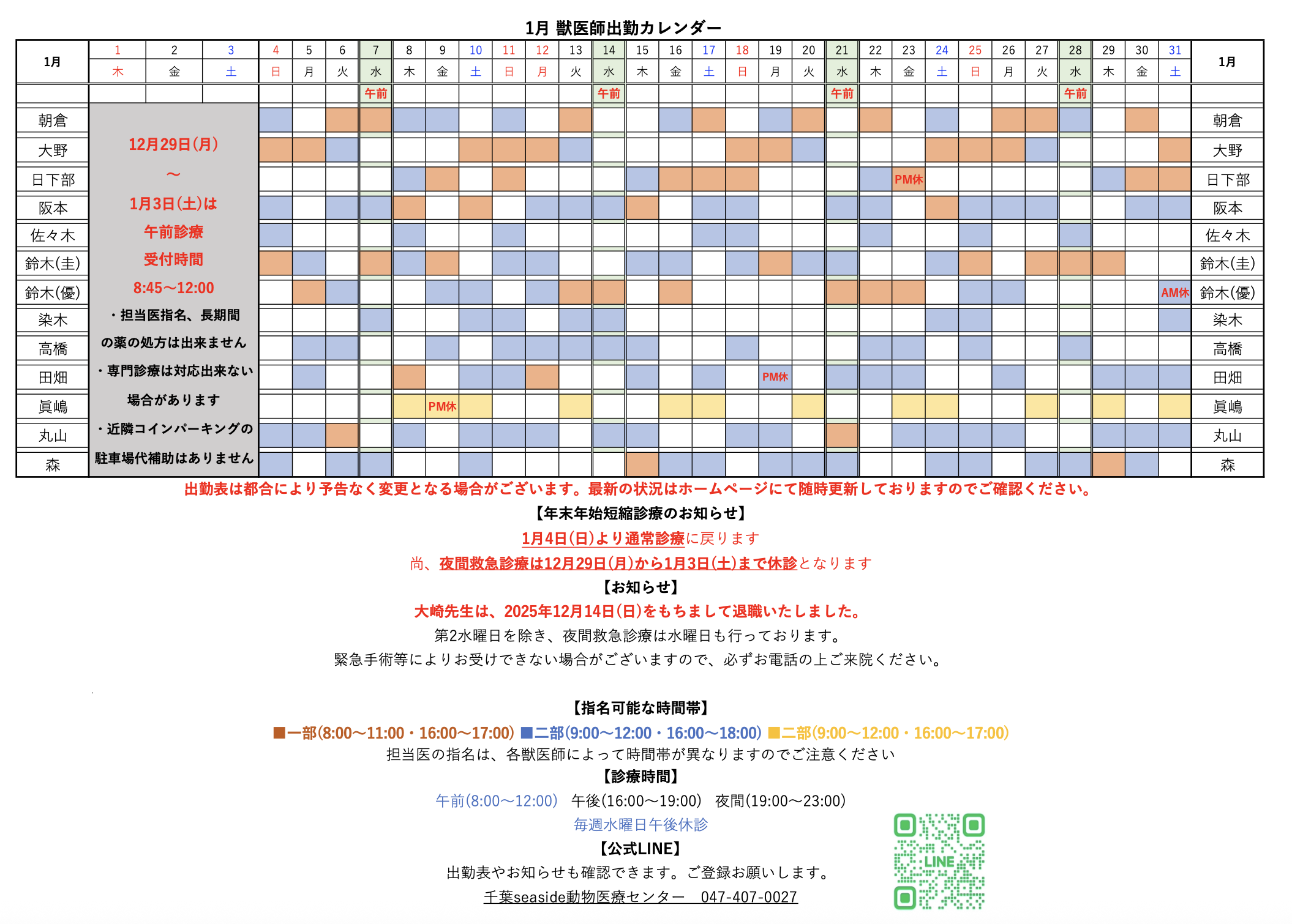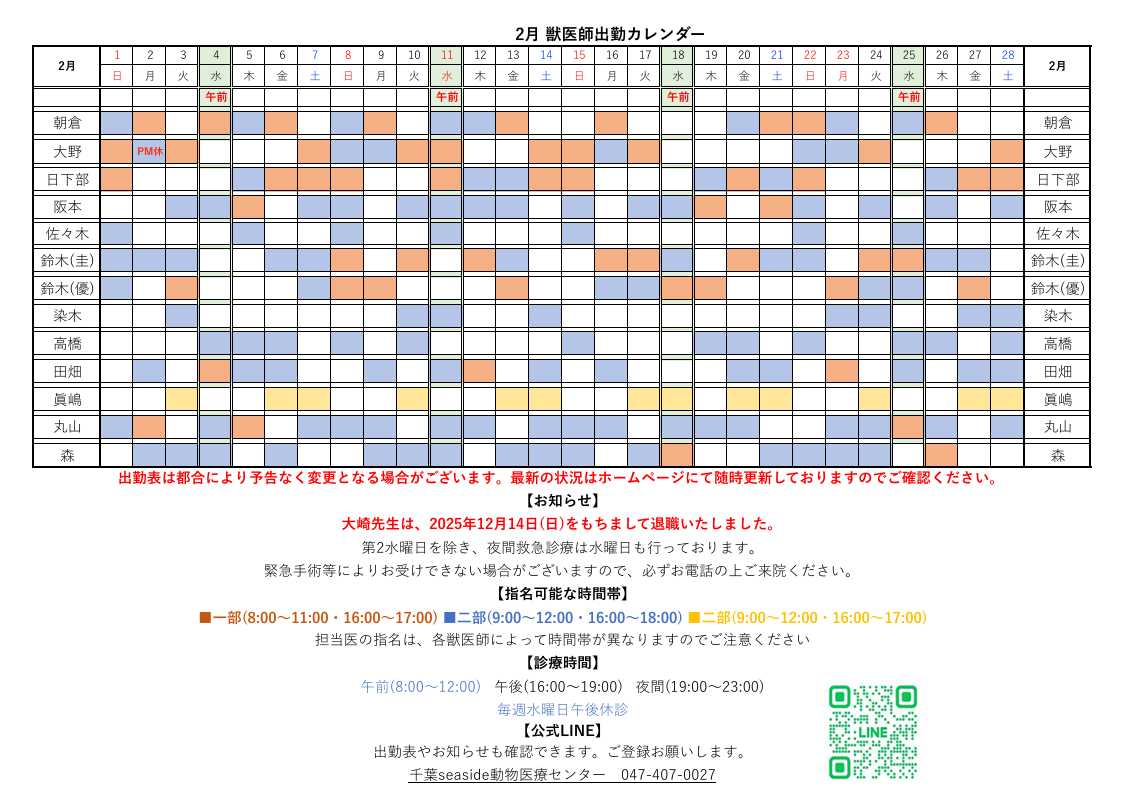 【鈴木 優生先生 出勤日変更のお知らせ】
