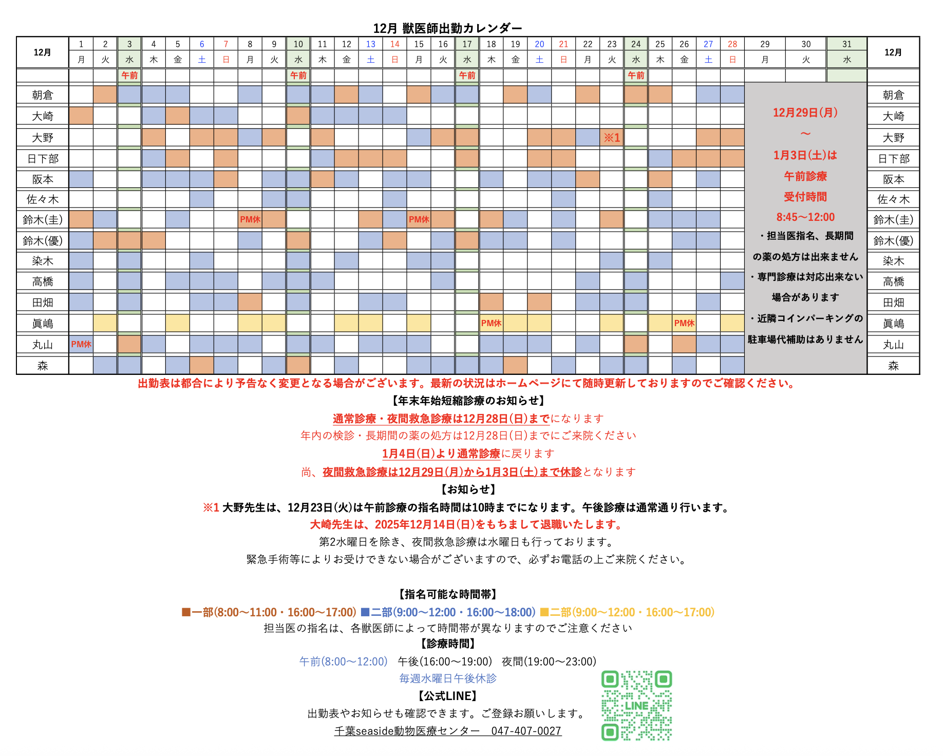 【年末年始の短縮診療のお知らせ】
