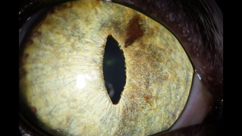 FDIMは猫特有の病期であり、早期病変は虹彩の色素斑(メラノーシス)から始まり、腫瘍期へと悪性転化していく疾患である